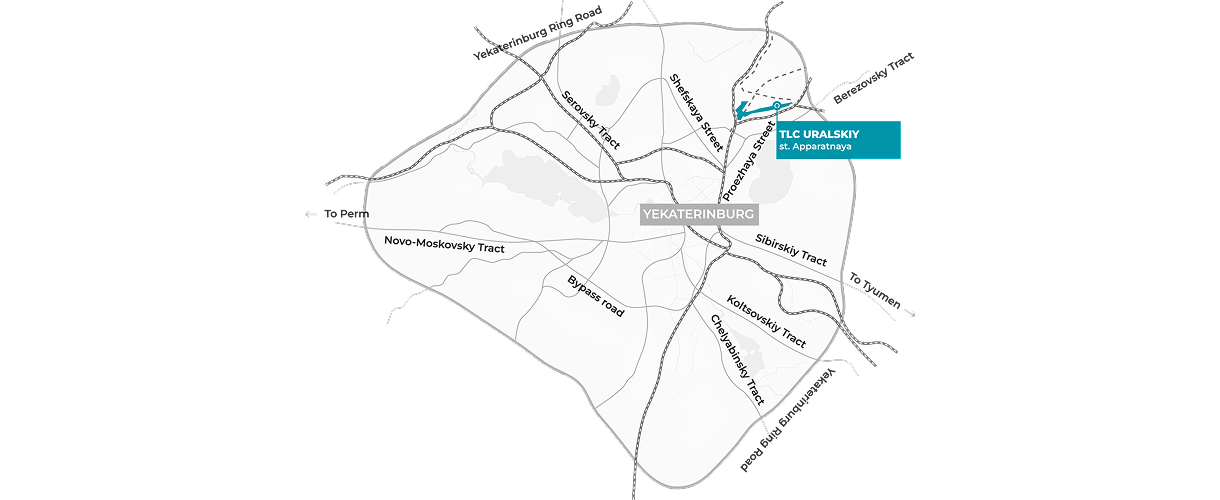 Uralskiy TLC is located far from the zone of active development of passenger railway traffic in the immediate vicinity of key transport routes. In the future, due to its favorable geographical location, it is planned to use the terminal to provide international transport.